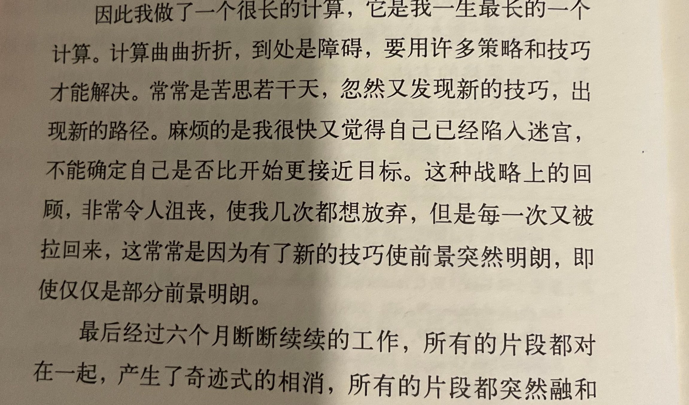 Yang's description here was so relatable that later, whenever my research stalled, I would share this quote with my collaborators to encourage everyone. I often found myself translating this passage into English for them.